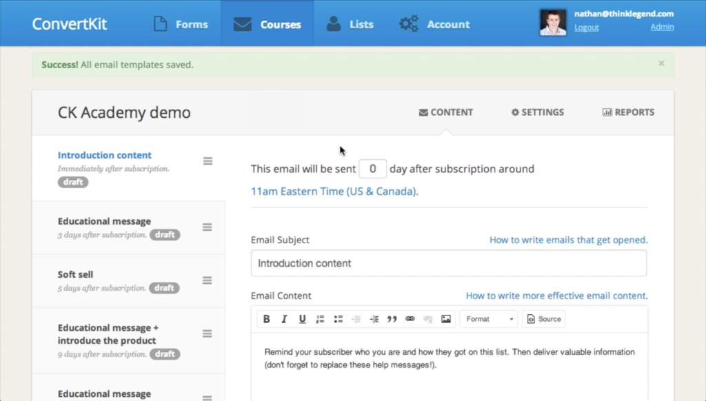 The best feature of ConvertKit was the ability to see your entire email series at a glance and move between it seamlessly. Now, even five years later, this interface is still remarkable when compared to competitors.